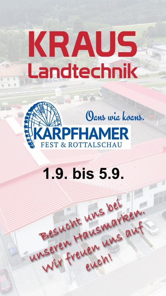 Auch dieses Jahr findet Ihr uns wieder bei den Ständen unserer Hausmarken: Claas:Freigelände 41 – Stand 4101 Ansprechpartner:Stefan KrausFlorian Bergbauer Same-Deutz-FahrFreigelände 20 – Stand 2003 Ansprechpartner:Stefan Kraus KRPANFreigelände 57 – Stand 5701 Ansprechpartner: Johanna KrausFranziska Geiger SchäfferFreigelände 20 – Stand 2002 AnsprechpartnerAndreas Kraus Wir freuen uns auf euren Besuch und wünschen euch eine tolle Zeit […]